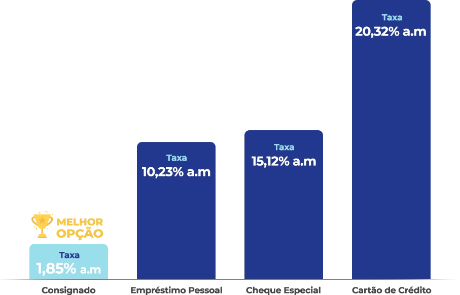 O crédito consignado é rápido e descomplicado, ou seja, a aprovação sai muito mais rápido. Além disso tem parcelas pré-fixadas, maiores prazos e juros mais baixos em comparação aos demais créditos do mercado, compare e veja.